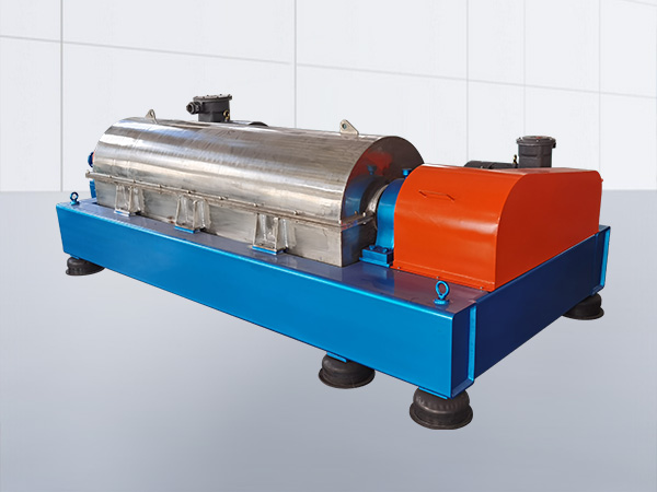 其工作原理是:懸浮液經(jīng)進料管、螺旋出料口進入轉(zhuǎn)鼓。在高速旋轉(zhuǎn)產(chǎn)生的離心力作用下,比重較大的固相顆粒沉積在轉(zhuǎn)鼓內(nèi)壁上,與轉(zhuǎn)鼓作相對運動的螺旋葉片不斷地將沉積在轉(zhuǎn)鼓內(nèi)壁上的固相顆粒刮下并推出排渣口,分離后的液相經(jīng)大端蓋液相溢流口通道排出;油相經(jīng)大端蓋油相溢流口通道排出。